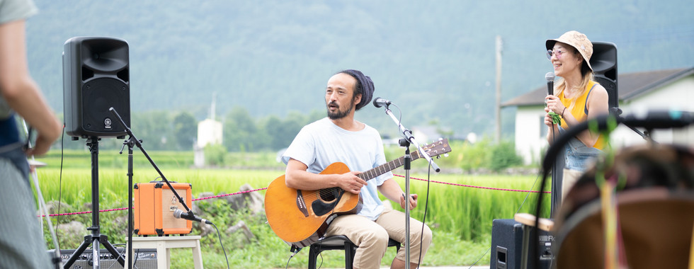 Aicoさんの歌声と、Ryujiさんのアコースティックギターの音色が最高だったのは言うまでもなく、流れる雲に装飾された由布岳も、家の用事やら何やら済ませてこの場に集って下さった皆様の想い、すべてがあたたかく包み込まれる、みんな愛情たっぷりの時間でした。